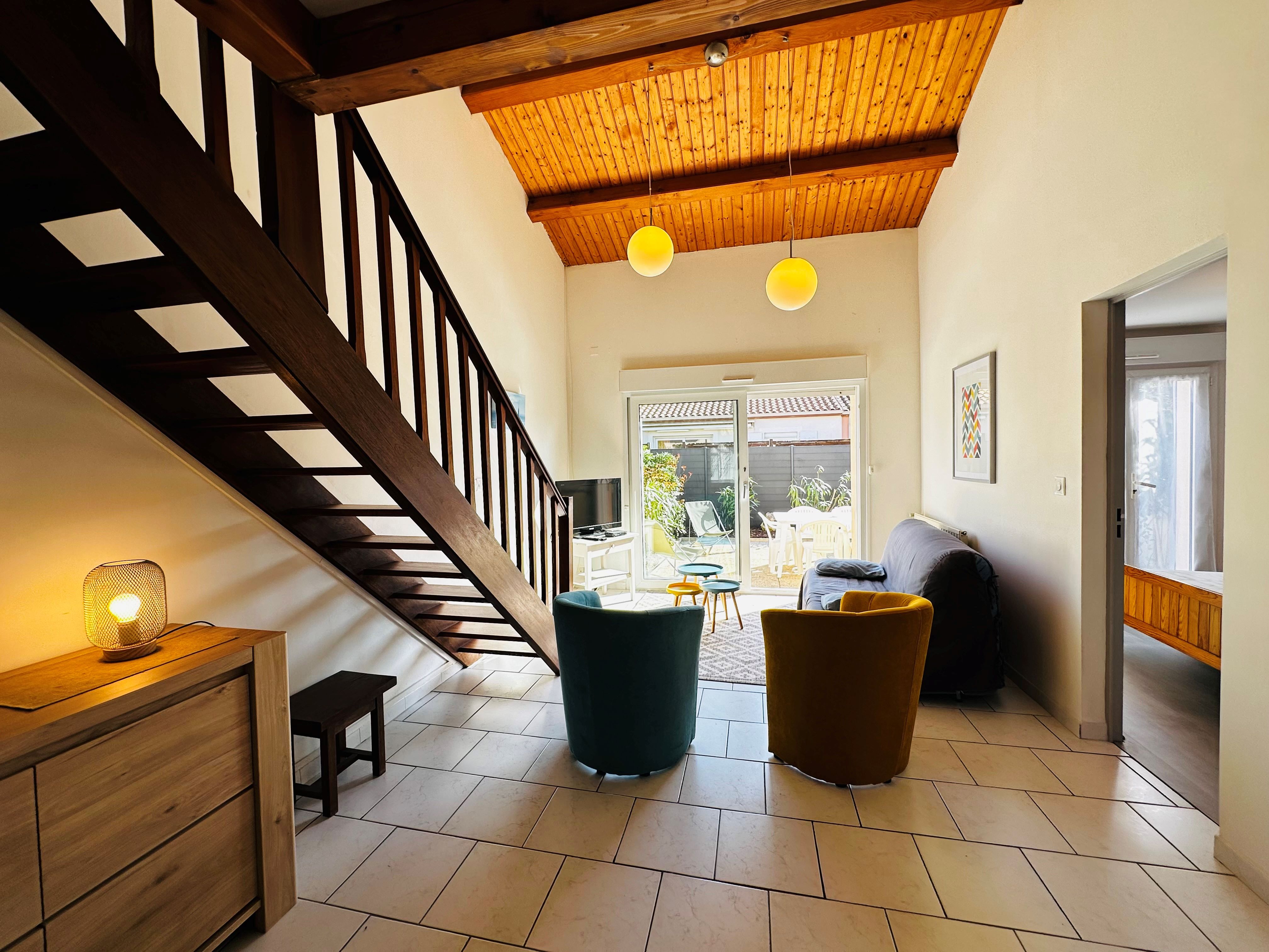 Fouras, à 300m de la Plage Sud et à 400m du plein centre ville, dans un environnement calme, villa en excellent état, confortable, aménagé pour 5 personnes et comprenant en RDC, entrée, cuisine, séjour, chambre, salle d'eau-WC,